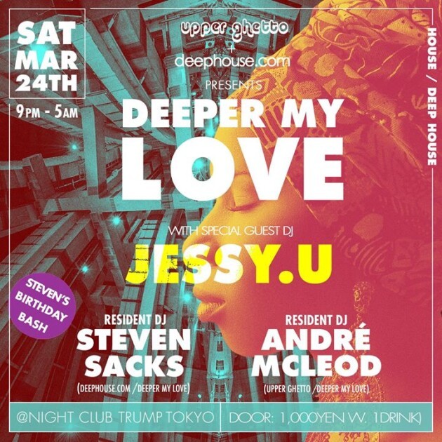 DEEPER MY LOVE is a monthly House Music party in the heart of Shibuya, Tokyo. The night is hosted by André McLeod (upper ghetto | NYC) and Steven Sacks (deephouse.com | LA) and often features excellent local and international guests DJs each month.