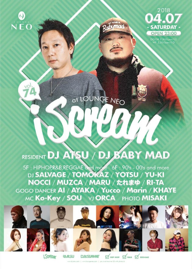レジデントのDJ ATSU, BABY MADを中心に、バッチリ盛り上げていきます!!