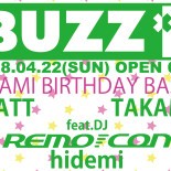 これぞ、東京アフターアワーズの決定版!毎年4月はBUZZ×3はレジデントDJ"TAKAMI"のBirthdayBashの開催!! Feat.DJで迎えるのはTAKAMIとも親交の深い"REMO-CON"、"hidemi"出演決定!早朝からドープなDJをかませっーーー