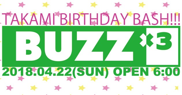 毎年4月はBUZZ×3はレジデントDJ"TAKAMI"のBirthdayBashの開催!!