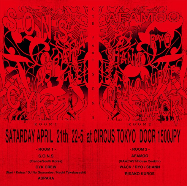 セルフリリースされたEP『Shibuya One Night Stand』がカルトヒットし、『Shinjuku One Night Stand』では、矢野顕子をサンプリングしたローファイでアシッドライクなブレイクビート“Acid Dreams (Trance Jungle Mix)”が密かに注目を集め話題を攫った韓国拠点のミステリアスなトラックメイカーS.O.N.SがCIRCUSに初登場。