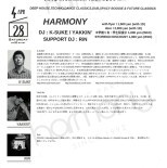 4月のHARMONYはレギュラーメンバーの2人とサポートDJに滋賀や京都で活動中の大学生DJの "RiN" を迎え真摯に音楽と向き合い皆さんと共にフロアを暖めたいと思います。