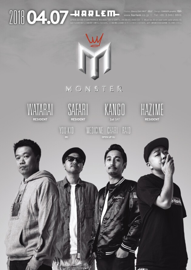 日本のHIP HOP SCENEを代表するDJが一堂に介する土曜日"MONSTER"。