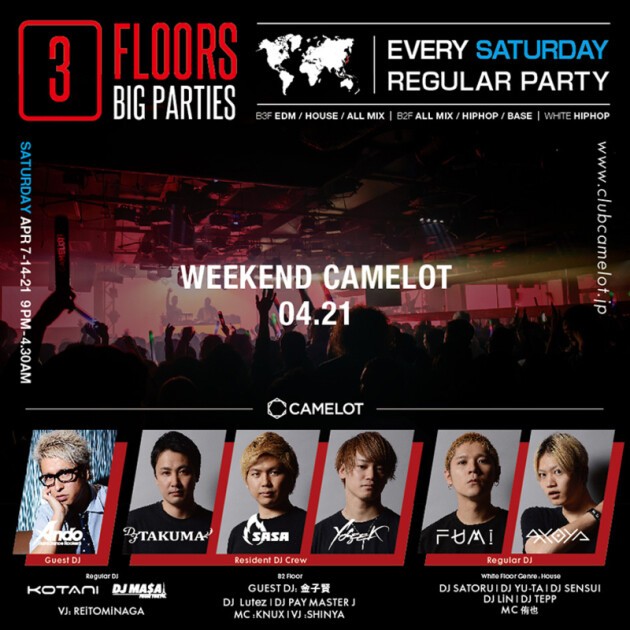 ※CLUB camelot will conduct ID check on all visitors. A photo ID with age verification is required at entrance.