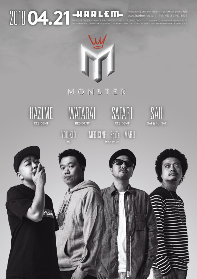 日本のHIP HOP SCENEを代表するDJが一堂に介する土曜日"MONSTER"。