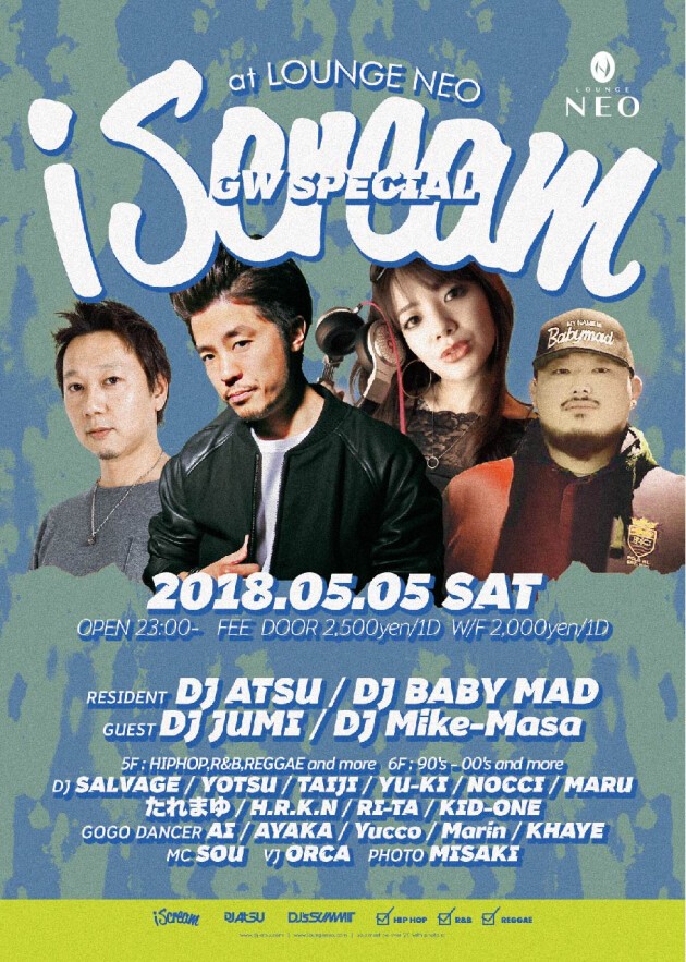 今回は、ゴールデンウィークスペシャルと言う事で、都内を中心に活動し自身のアクセサリーブランド"Jumina 13"でも話題のフィメールDJ、DJ JUMI、R&Bを軸にR&BシンガーのRemix等を手掛けたりとプロデューサーとしても幅広く活動しているDJ Mike MasaがiScream初登場!!