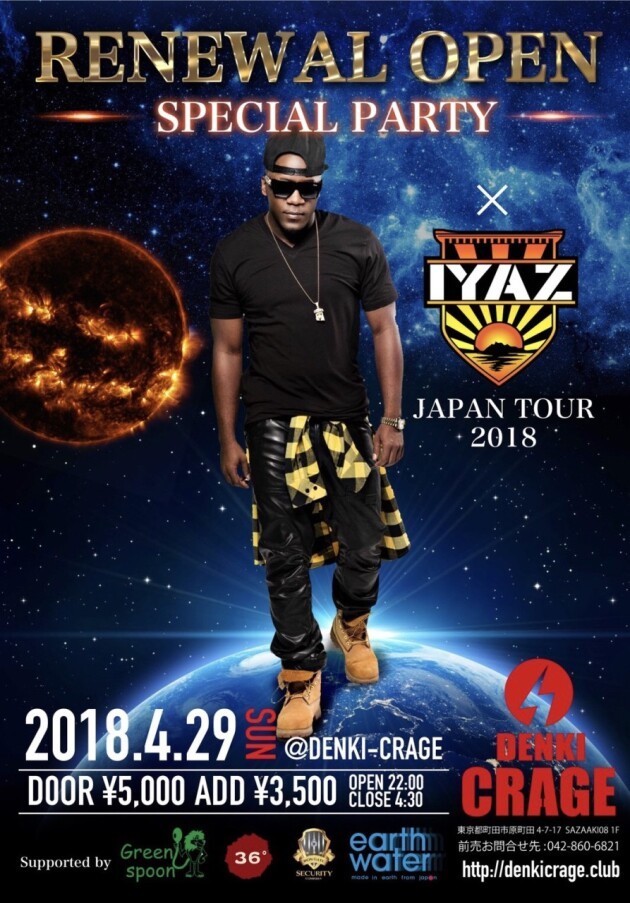 町田 DENKI CRAGE:4/29 日曜日】今夜は“リニューアルオープンSPパーティー”開催!SPゲスト【IYAZ】出演!HIPHOP CLUB“DENKI CRAGE”