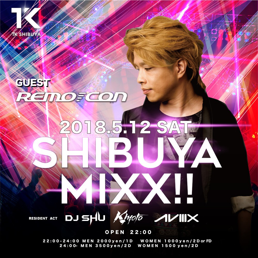 毎週末開催!TK SHIBUYAが誇る週末看板パーティー! LED ロボット,GOGOダンサー,ポールダンサー、度肝を抜く空間演出に加え、各地で活躍する豪華GUEST DJを招いて毎週末1500名規模のオーディエンスが熱狂するSHIBUYA MIXX!!