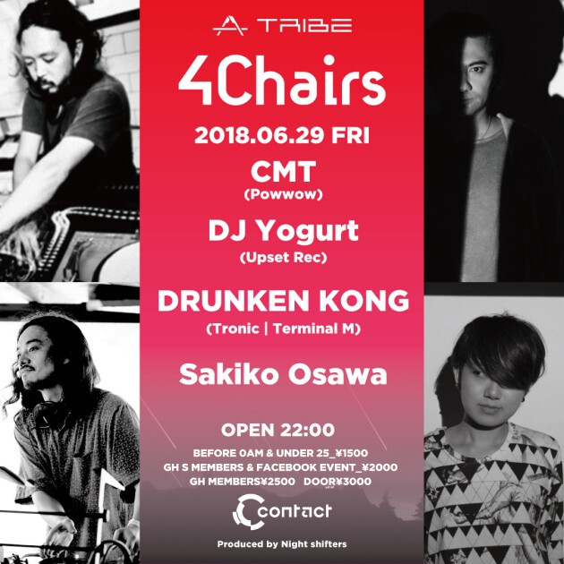 本物のクラブミュージックを愛する方々へ向けてContactが自信を持ってオススメするスペシャルパーティ”4Chairs”第4回目を開催。