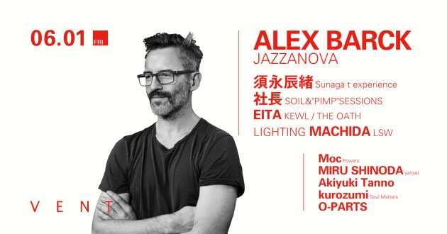 Jazzanova has released a number of masterpieces that splendidly blend electronic music, jazz, soul etc. and presented new club sounds to the world. Personal label Sonar Kollektiv belonged to Dixon in the early stages, and Alex Barck first appeared on VENT on 1st June from Jazzanova, the foundation of Berlin scene as DJ team's representative !