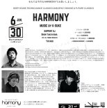 6月から新たに始動したHARMONY。今回はサポートDJにクロスオーバーパーティー "縁 -en-" より、Shun TakayamaとYutaroの2人を迎え皆さんと共にフロアを暖めたいと思います。