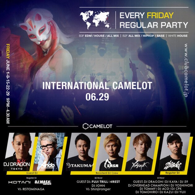 ※CLUB camelot will conduct ID check on all visitors. A photo ID with age verification is required at entrance.