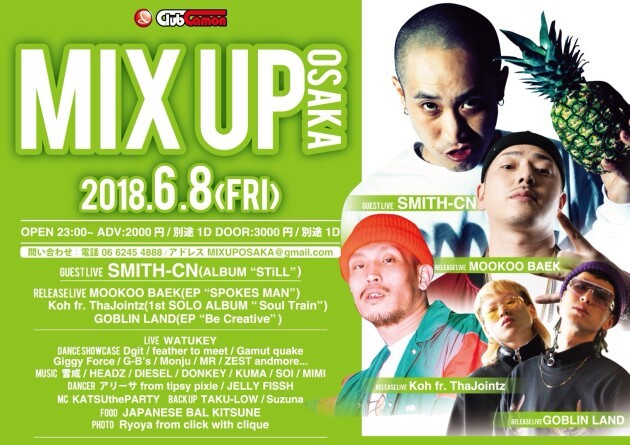 【MIX UP】6/8(金)☆偶数月第2金曜開催『MIX UP』☆☆RELEASE LIVEにMOOKOO BAEK、Koh fr. ThaJointz、GOBLIN LANDが登場★★