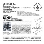 そして今回のピックアップアーティストは、今やこのBorderlandを牽引してきた【RINN】が満を持して3Hours setを披露。独自の視点からシーンを解釈し、様々なパーティーを作ってきた彼の真骨頂にご期待下さい。