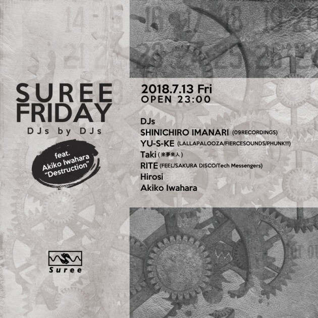 恵比寿Suree、金曜日の“SUREE FRIDAY”は様々なシーンで活躍するDJ達が「今一緒に集まりたい」メンバーを選りすぐってお届けする”by the DJs”パーティ。