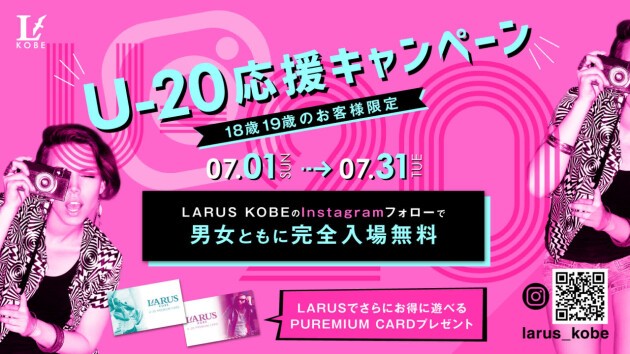 LARUS KOBEのInstagramをフォローで男女ともに完全入場無料!