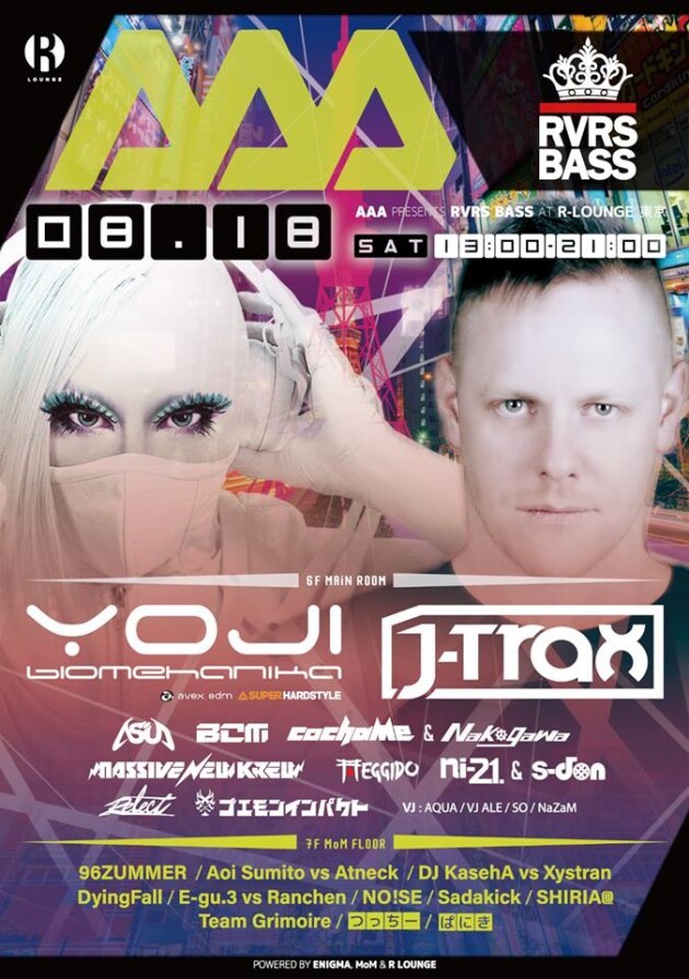 皆様ご存知、スーパー・アンセム「HARDSTYLE DISCO」が時代を超えて今世界で再ブレイク中の我らがレジェンド YOJI BIOMEHANIKA が再降臨!そしてリバース・ファン熱望の的、天下無双のレーベル RVRS BASS のフラッグを提げて J TRAX が緊急初来日!その他、都内を中心に活躍するハード&アッパーなDJ陣が大集結!