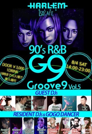 渋谷Harlemで年に2回開催される90sR&Bのビッグイベントそれが"Groove9" 幅広い世代の90sR&Bフリーク方達で毎回大盛況 まだ体験してない方や興味が沸いたあなたは、ぜひ体験してください。 今回もDJ陣に、J-WAVEの人気番組"SATURDAY NIGHT VIBES”他多数のメディアで活躍中のDJ TARO。 ”六本木GASPANIC” ”西麻布J-TRIP BAR” “六本木エロス” “六本木R HALL”等のクラブでレジデントやイベントで活動しGroove9のオーガナイザーでもあるDJ Chomiya。 ”新木場Ageha”等のクラブイベントで活動し現在は"銀座Soul Sonic Boogie”で活動中のDJ HI-DE。 30代ながら90’sR&BやNew Jack Swingにも造詣が深い DJ A2K。 そしてGuestDJには、90年代からKingQueen・AREA等の有名DISCOでチーフDJとして務める傍ら、 GLUM SLUM(グラム スラム)横浜等のHIP-HOP系のCLUBでもゲストDJとして活動していたDJ Sawa。PCを使用せず全てアナログで昔ながらのプレイをスタイルとするDJ TAIMAN。 90'sR&Bを知り尽くした叩き上げの本物のクラブDJ達を揃えました。 更にこのイベントに欠かせないスペシャルなGOGO DANCERも出演 GOGOダンサー界の重鎮Kyon&Midori。 そしてポールシアターワールドコメディ部門優勝者のYsutaka、各クラブ・ディスコ。イベントで活躍中のOsamuを加えた超強力なダンサー陣 最高にCrazyでCoolでSexyなハーレムの夜に酔いしれてください