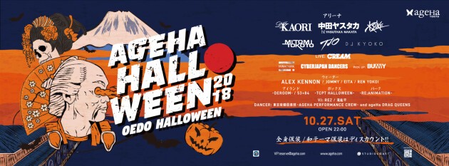 ARENAにはDJ KAORI、中田ヤスタカ、KSUKE、MITIMI TOKOTO、CYBERJAPAN DANCERSら日本を代表するアーティストが集結。さらにはCREAMが #ageHalloween に初出演!