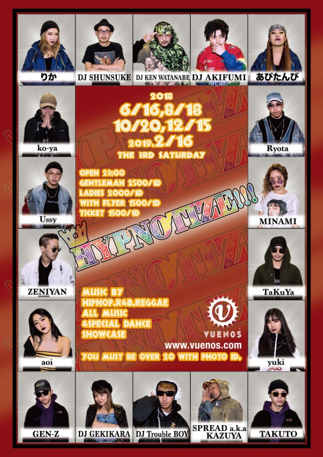 偶数月第3土曜の週末は是非New Party『Hypnotize!!!』へお越し下さい!!!