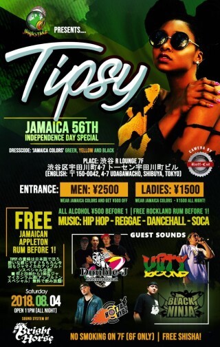 ■ FREE APPLETON JAMAICAN RUM 23:00 - 1:00am!! TIPSY の意味は日本語でほろ酔いな感じです♪もちろん今回もジャマイカのアップルトンスペシャル企画■ 何と23:00から1:00迄ジャマイカンラム酒(アップルトンスペシャル)無料で飲み放
