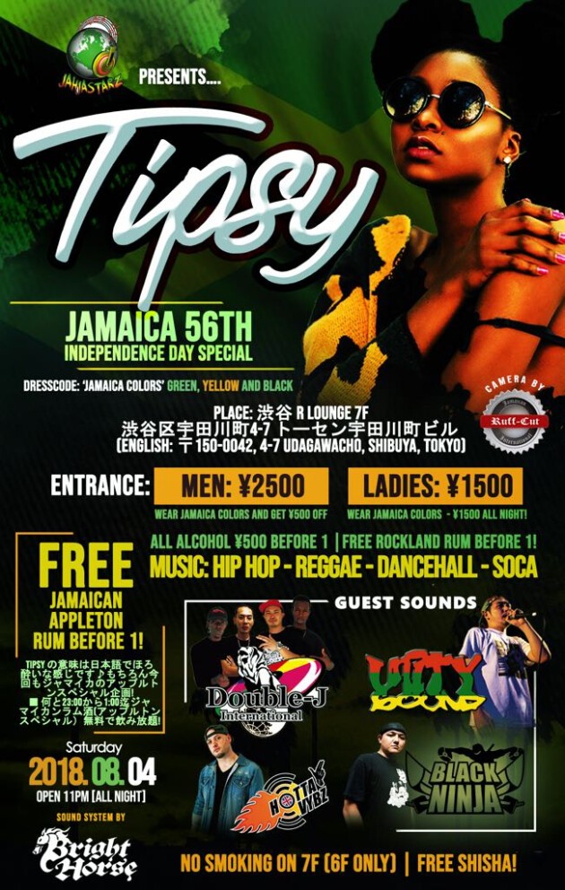 TIPSY の意味は日本語でほろ酔いな感じですもちろん今回もジャマイカのアップルトンスペシャル企画■ 何と23:00から1:00迄ジャマイカンラム酒(アップルトンスペシャル)無料で飲み放題