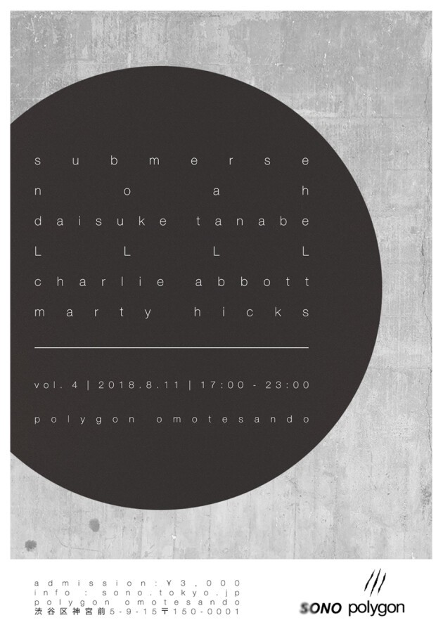 Vol.4 is the 4th Tokyo event curated by NYC-based SONO. The event takes place at Polygon Omotesando, located on Omotesando road in Harajuku, and features 5 prominent Tokyo based artists.