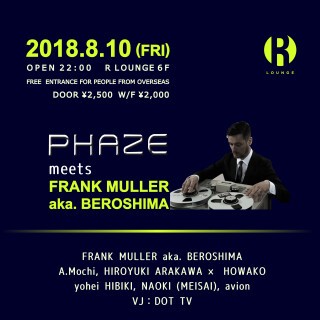2016年4月にスタートし、毎週水曜日のR LOUNGEにてテクノ、ハウスを中心に最新のダンスミュージックを発信するパーティ『PHAZE』