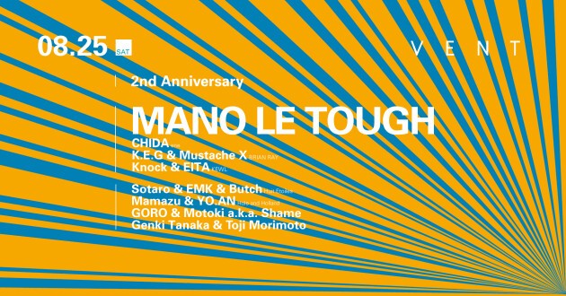 Since opening in 2016, Omotesando VENT has made some serious waves in the Tokyo club scene with its state-of-the-art sound system and its consistency in booking only the best acts from around the world. Come celebrate two amazing years with us at VENT on August 25th with the breakthrough artist in the electronic music scene, Mano Le Tough.