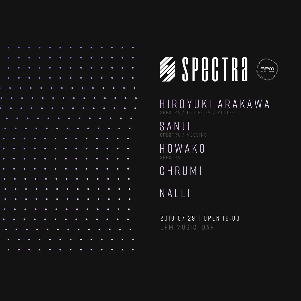 Coming 3rd SPECTRA SHOW CASE broadcasted 29th JUL in Tokyo (BPM MUSIC BAR).