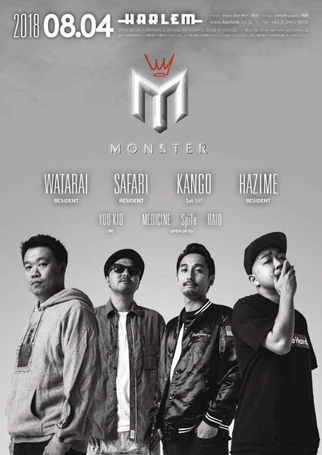 日本のHIP HOP SCENEを代表するDJが一堂に介する土曜日"MONSTER"。