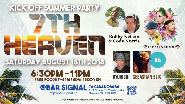 Come and join us at the Kick Off Summer Party "7th Heaven" in Takadanobaba on Aug 18th.