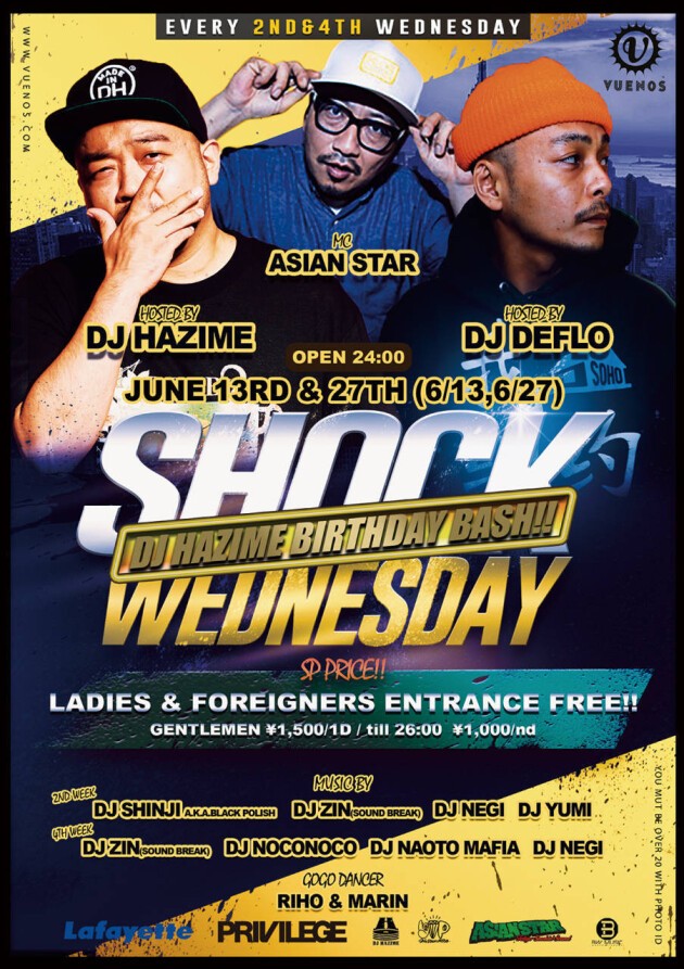 渋谷VUENOSにて第2、第4水曜日開催『SHOCK WEDNESDAY』