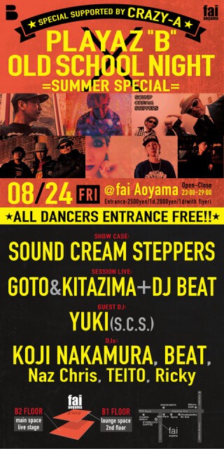 ★8/24(fri) PLAYAZ"B" x OLD SCHOOL NIGHT -Summer Special!!!- @ fai aoyama