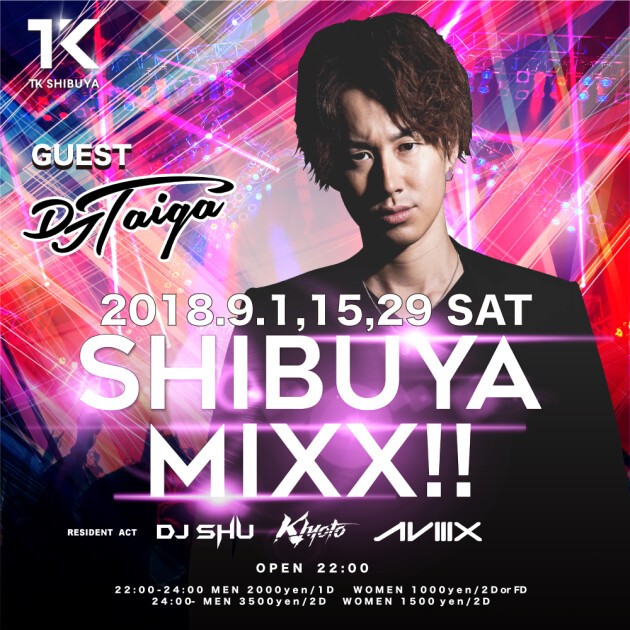 毎週末開催!TK SHIBUYAが誇る週末看板パーティー! LED ロボット,GOGOダンサー,ポールダンサー、度肝を抜く空間演出に加え、各地で活躍する豪華GUEST DJを招いて毎週末1500名規模のオーディエンスが熱狂するSHIBUYA MIXX!!