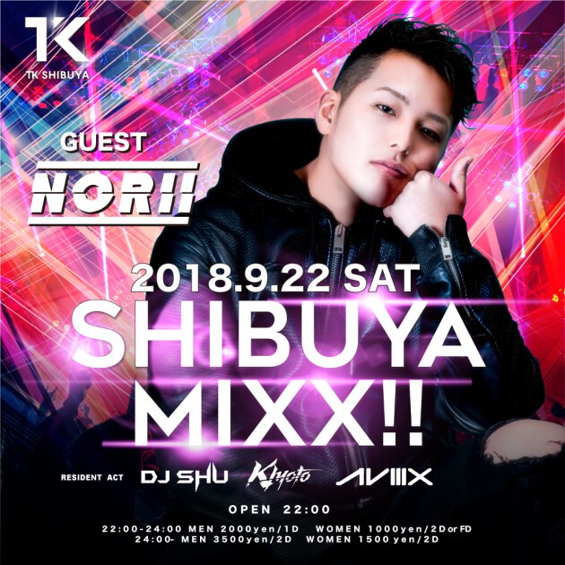 毎週末開催!TK SHIBUYAが誇る週末看板パーティー! LED ロボット,GOGOダンサー,ポールダンサー、度肝を抜く空間演出に加え、各地で活躍する豪華GUEST DJを招いて毎週末1500名規模のオーディエンスが熱狂するSHIBUYA MIXX!!