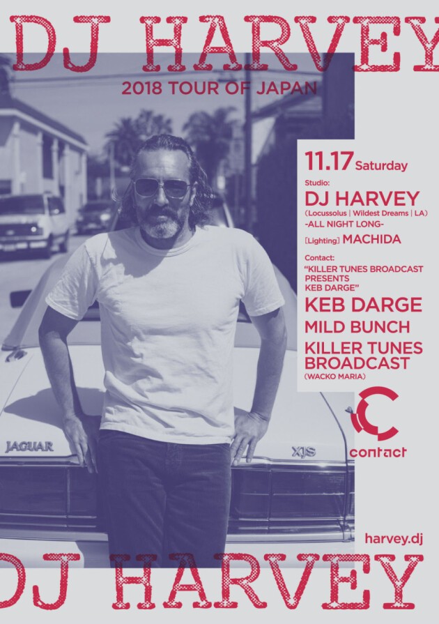 DJ Harvey (harvey.dj) was called The Keith Richards of dance music by Rolling Stone Magazine as they named him one of the top DJ's that rule the earth. Being selected as one of the top 10 DJs of the world, he has performed all over the world including a residency at Pikes Ibiza, appearances at Coachella and Fuji Rock Festival 20th Anniversary. His appearance at Contact last year was selected as the No.1 party「Clubberia Award 2017」by Japan’s biggest dance music portal site Clubberia. Undeniably a living legend, DJ HARVEY’s return to Japan should not be missed.