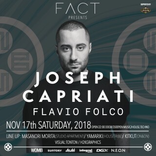 This time, featured in an extravagant double header from the European techno scene that has matured in recent years, are Italy-born Joseph Capriati, among the few to establish his status as a top artist and remarkably uplift his artistic merit, and FLAVIO FOLCO, who is an up and coming artist gotten Joseph's support and will be coming to Japan for the first time.