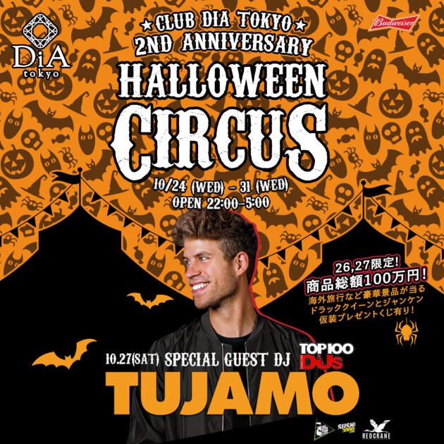【DiA Tokyo】10月24〜31日までハロウィン & 2周年アニバーサリーイベント開催!27日にはスペシャルゲストになんと TUJAMO が登場!! 他にもお得で楽しいイベントが盛りだくさんの8日間!!