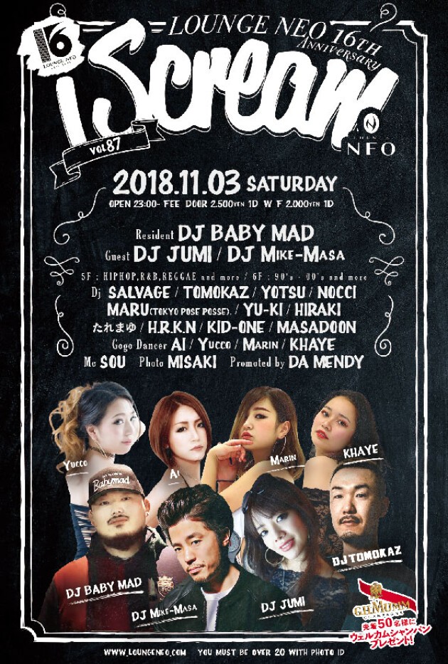 10月でiScreamの創設者であるDJ ATSUが卒業し、今月よりレジデントDJ BABY MADを中心に、新生iScreamとして初の開催となります!