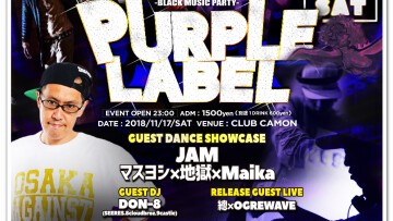 【PURPLE LABEL】11/17(土)☆奇数月第3土曜開催『パプラベ』☆☆GUEST DANCERにJAM、マスヨシ×地獄×Maika、RELEASE GUESTに總×OGREWAVEが登場★★