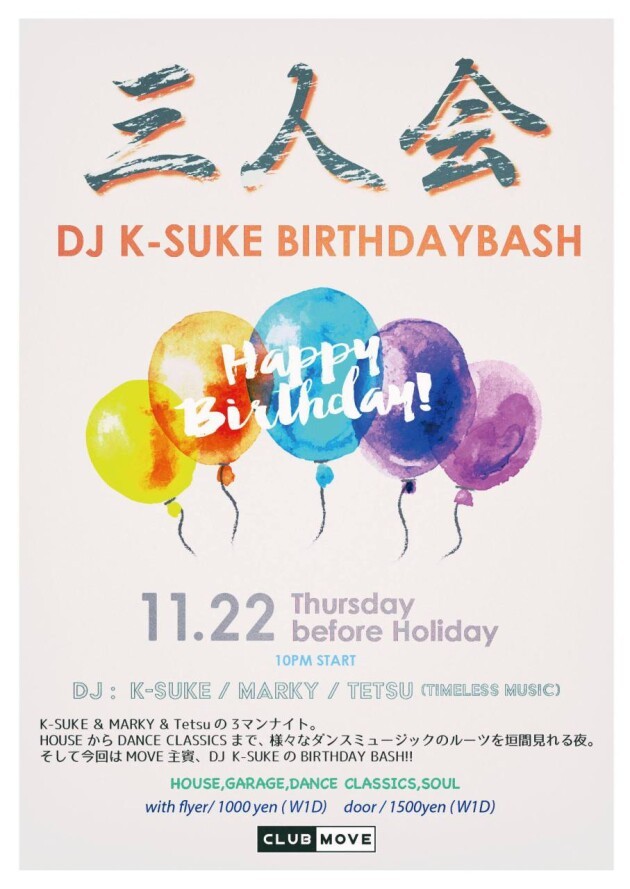 そして今回はMOVE主賓、DJ K-SUKEのBIRTHDAY BASH!!