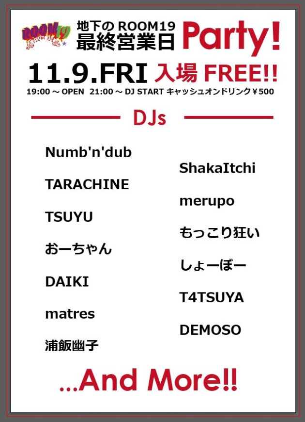 地下のROOM19最終営業日Party!!!!!