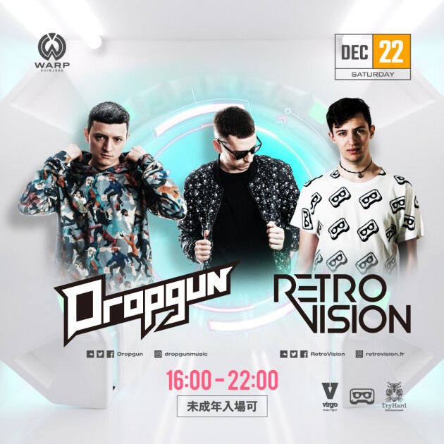 新宿の歌舞伎町に新しい未来型ナイトクラブ「WARP SHINJUKU」に フューチャーハウスの首領ことDon Diabloからも一目置かれる要注目の 『DROPGUN』、『RetroVision』2組がデイパーティーに登場!! お見逃しなく!!