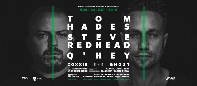 Two DJs who have for a long time continued to sustain the Belgian techno scene will be coming to Japan. TOM HADES, head of the RHYTHM CONVERTED label, and STEVE REDHEAD, head of REDA RECORDINGS. Together, they have been responsible for creating the theme song for Belgian big festival "I LOVE TECHNO.” In Japan, they have experience playing at clubs such as LIQUID ROOM in Shinjuku, MANIAC LOVE in Aoyama, and ELEVEN in Nishi-Azabu. Not being concerned with fads and trends, their consistent play has seen them continually blasting out hard-style techno. In this first opportunity to experience them playing at the same time, they will have strong support from Q'HEY, who has played host to all their performances in Japan. Feel the jet black beats through your whole body, booming out from this force of veteran DJs.