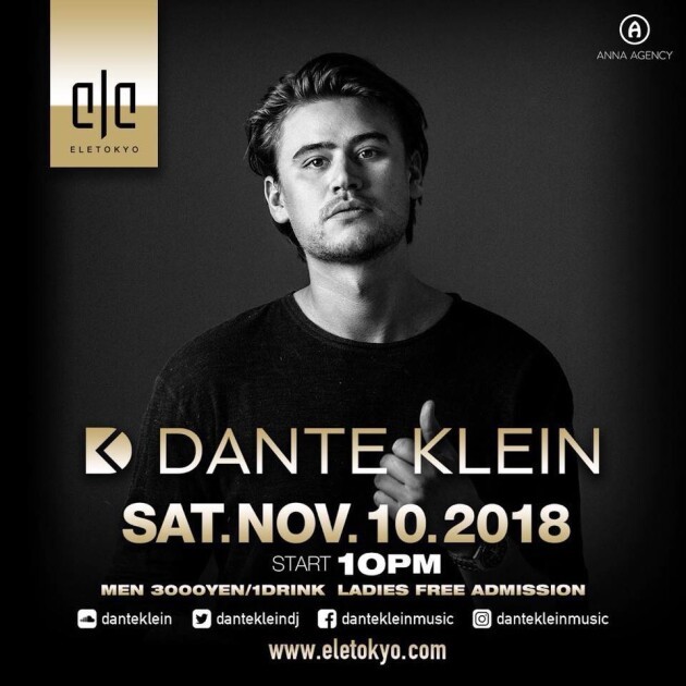 <<今週11月10日(土)21歳という若さで世界最大級のフェスティバルTomorrowlandに出演を果たした、オランダ出身のDJ Dante Klein(ダンテ・クレイン)の初来日公演!>>