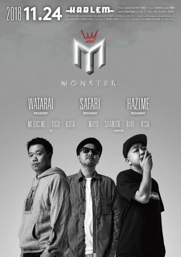 日本のHIP HOP SCENEを代表するDJが一堂に介する土曜日"MONSTER"。