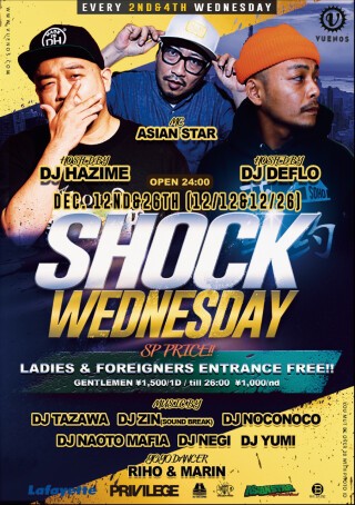 渋谷VUENOSにて第2、第4水曜日開催『SHOCK WEDNESDAY』