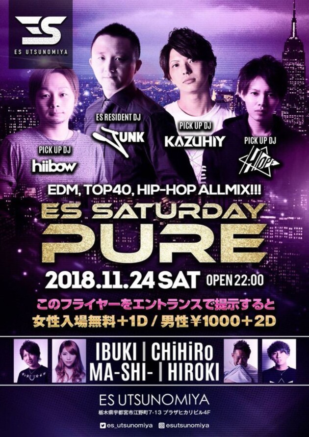宇都宮[DJ JUNK]& 水戸[DJ KAZUHIY]がタッグを組んだ注目のイベント大好評の【PURE】 DJ,JUNK, KAZUHIY, hiibow, Hope, IBUKI, CHiHiRO, MA-SHI-, HIROKI