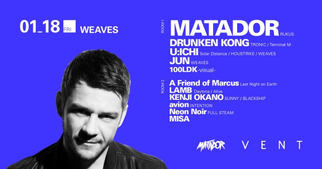 Matador's performance has been organized by Weaves, which has delivered countless parties, inviting top talent from abroad, since their inception back in 2013. They are on the frontline when it comes to what's hot in the European Techno and House scenes, so prepare yourself to witness a massive chemical reaction when these two entities bond!